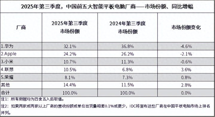 近日,IDC发布了2025年第三季度中国平板电脑市场季度跟踪报告。数据显示,2025年第三季度中国平板电脑市场出货量为849万台,同比增长10.9%。其中,华为连续第八个季度以市场份额第一的姿态领跑中国平板市场。今年7月起,华为在消费市场迎来大规模产品迭代,凭借鸿蒙原生应用与PC级第三方应用,进一步强化平板的“生产力”定位。