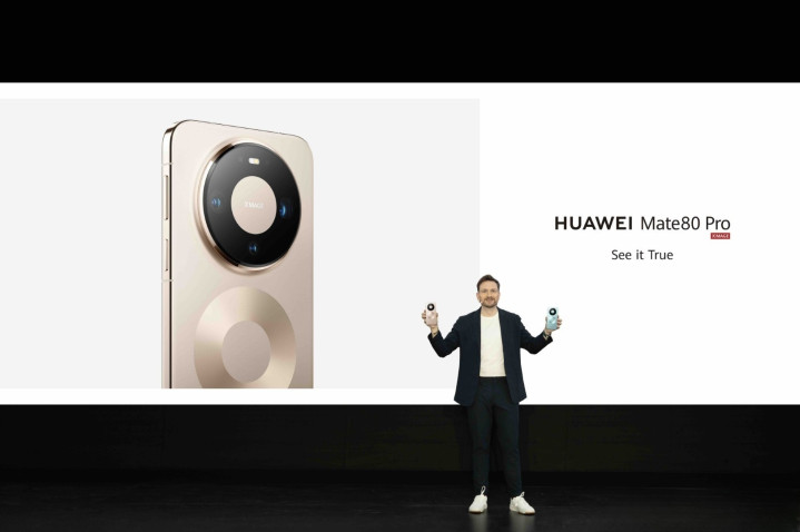 华为Mate80 Pro发布会 :海外发布会现场展示Mate80 Pro机型