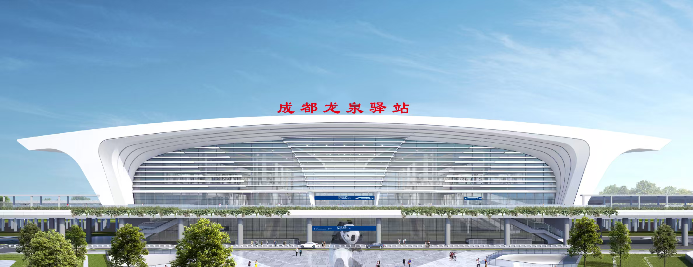 据中铁建设集团项目副总工程师苑贺立介绍,成都龙泉驿站位于成都市龙泉驿区大面街道,站房建筑面积约2.4万平方米,站场规模4台9线,设计最高聚集人数2300人。车站以“站城融合、城轨融合、景城融合”为设计理念,以“蜀都林盘 交织锦绣”为建筑立意,整体造型简洁大气,展现新时代客运枢纽风貌。